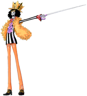 Brook is the musician of the Straw Hat Pirates, a living skeleton who returned to life using the Revive-Revive Fruit and a master swordsman seeking to reunite with the whale Laboon.