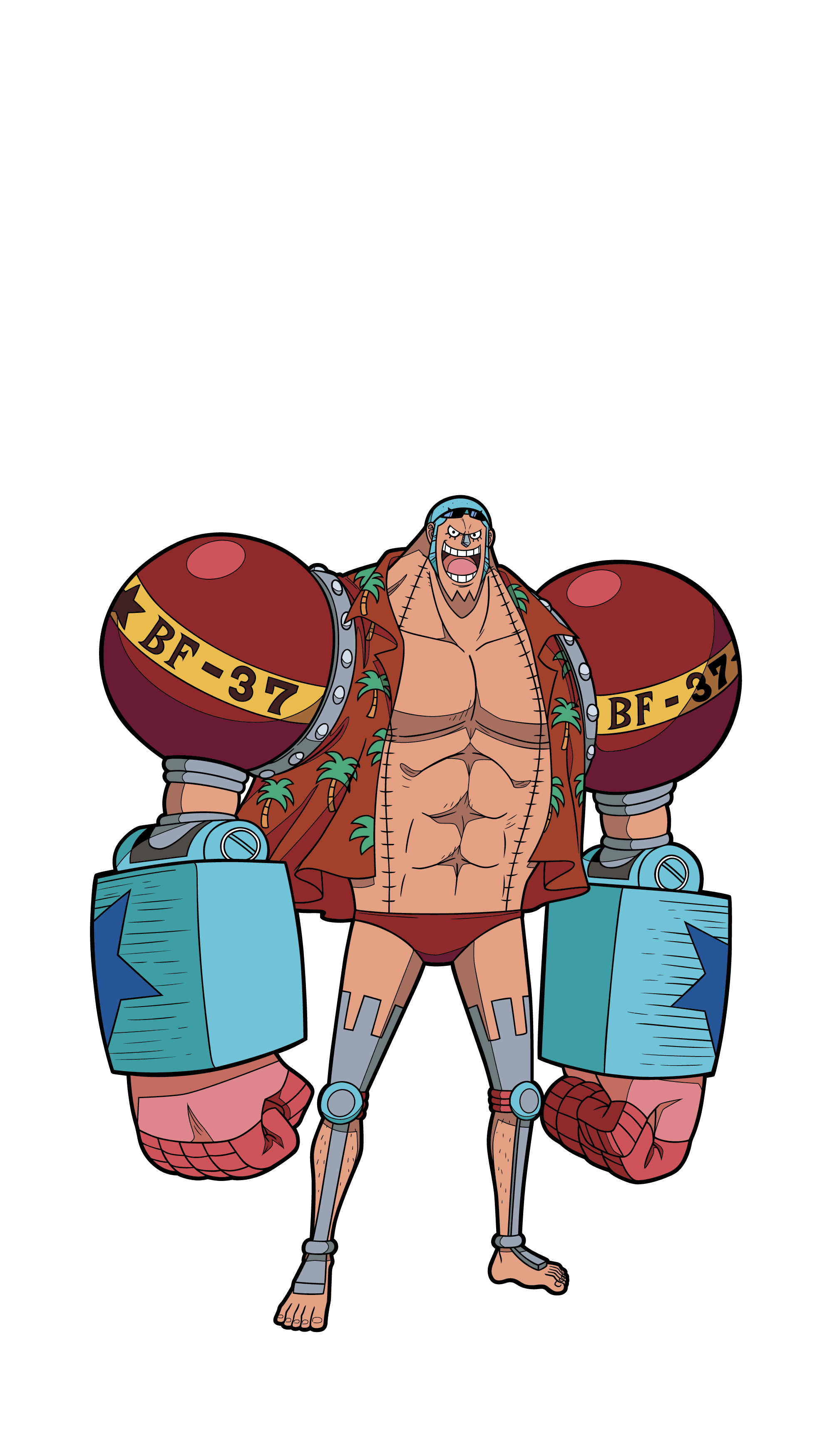Franky, born Cutty Flam, is the eighth member to join the Straw Hat Pirates. Originally introduced as an antagonist in the Water Seven arc, he eventually became the crew's indispensable shipwright after building their second ship, the Thousand Sunny.