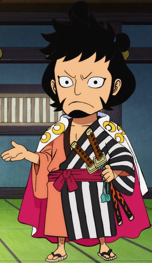 Kin'emon is a loyal samurai retainer of the Kozuki Clan and key member of the Ninja-Pirate-Mink-Samurai Alliance in One Piece.